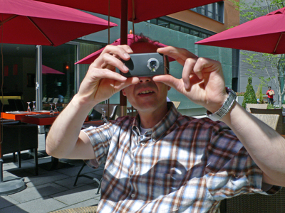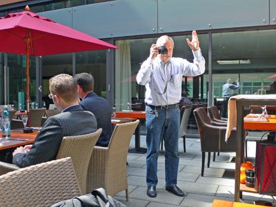 Mittags gab es ganz spontan, weil der liebe Fritz auf der Durchreise zum Jubiläum "40 Jahre Abitur" (da kann man mal sehen, wie alt wir sind) in einer hübschhäßlichen Spesenritterburg ein Hackertreffen. Wir drei waren außer zwei Abteilungsleiterinnen einer Investmentbank die einzigen Nicht-Schlipsträger: Der legendäre Telefondosen-Vergewaltiger Fritz, der Herr Doktor (mit dem allerneusten Nokia)