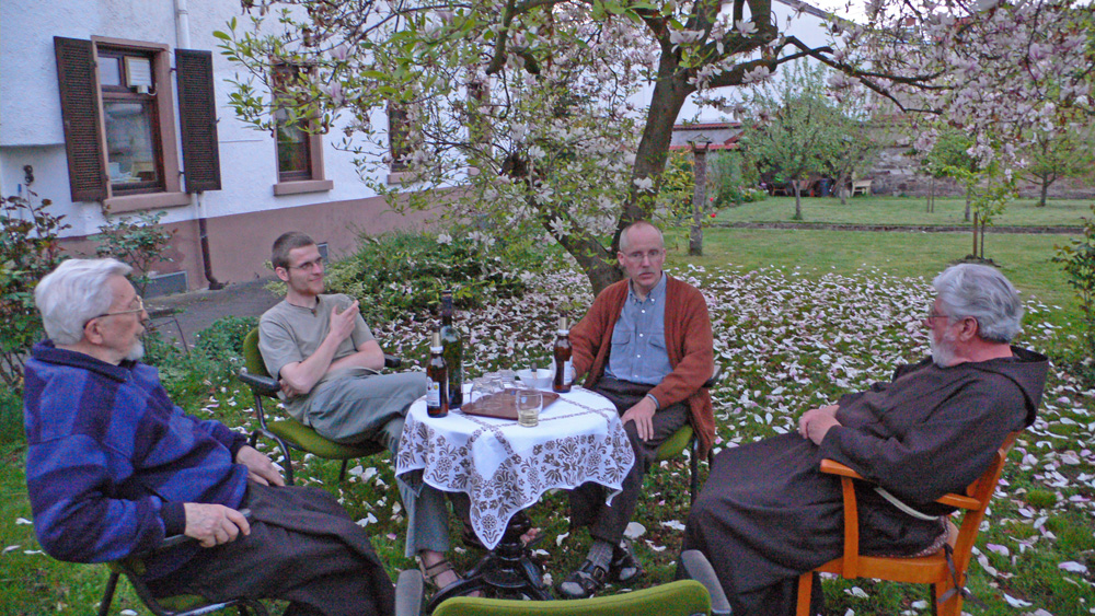 bei uns in Dieburg mit jungen Männern zum zweiten Kapuziner TREFF Punkt Entscheidung. Die ersten Teilnehmer sind heute abend schon da und betrachten sich hier eine alte landkarte mit den Niederlassungen des Ordens.