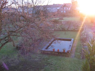 ... habe ich heute morgen mit meinen vor dem Bildschirm gestern nacht 19-zöllig und viereckig gewordenen Augen. "Nun aber steh ich, bin munter und fröhlich, schaue den Himmel mit meinem Gesicht", wie der evangelische Pastor und Liederdichter Paul Gerhardt gesungen hat. Und da geht die "güldne Sonne, voll Freud und Wonne" am Montagmorgen gerade vor dem Fenster auf, wo ich beim Kaffeekochen aufs Tröpfeln des Wassers durch die Maschine warte. Schön ist das. Gestern morgen flog zur gleichen Stunde ein Reiher so niedrig über den Garten, als ob er unseren Goldfischteich für ein schön garniertes kaltes Büffet halte. Ich wollte, ich wäre ein "Birdwatcher" wie einer der Brüder, dann hätte ich jeden Morgen hier ein Tierfoto. Aber so werde ich gleich erzählen, wie wir gestern abend zusammensaßen, und wie aus meinem "Sukiyaki" ein "Monte Subiaso" wurde. Das ist dann auch Gelegenheit, damit anzufangen die Mitbrüder vorzustellen. Bis nachher, nach der Hl. Messe.